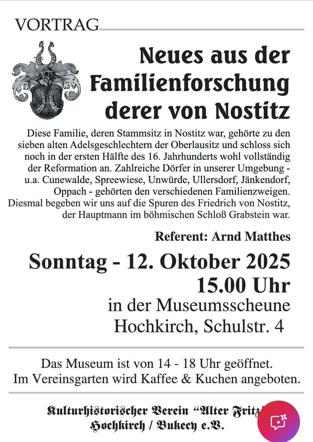 15:00 Uhr Vortrag "Neues von der Familienforschung derer von Nostitz" (Bild Arnd Matthes)